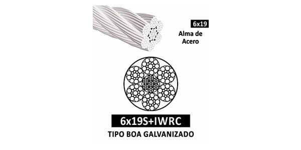 ° Tipo: Cable de acero galvanizado tipo BOA con alma de acero independiente (IWRC).